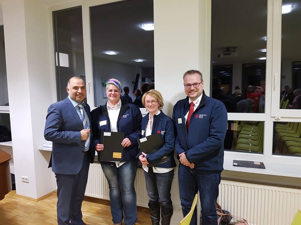 Der Bürgermeister der Stadt Arnsberg Ralf Paul Bittner überreichte im Peter Prinz Bildungshaus an Angie Kinnbacher, Nadine Denz, Sebastian Denz und Christian Boehl die Ehrenamtskarte der Stadt Arnsberg.
